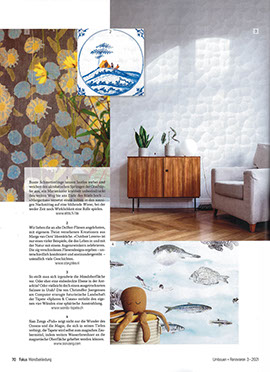 Hier entdeckt man individuell gestaltete Designtapeten und Wandoberflächen, die optisch angelehnt sind an zeitgenössische Grafik, Illustration, Fotografie und Kunst. Die Kollektion wird dabei laufend um Entwürfe von Schweizer Gestaltern und Künstlerinnen erweitert.